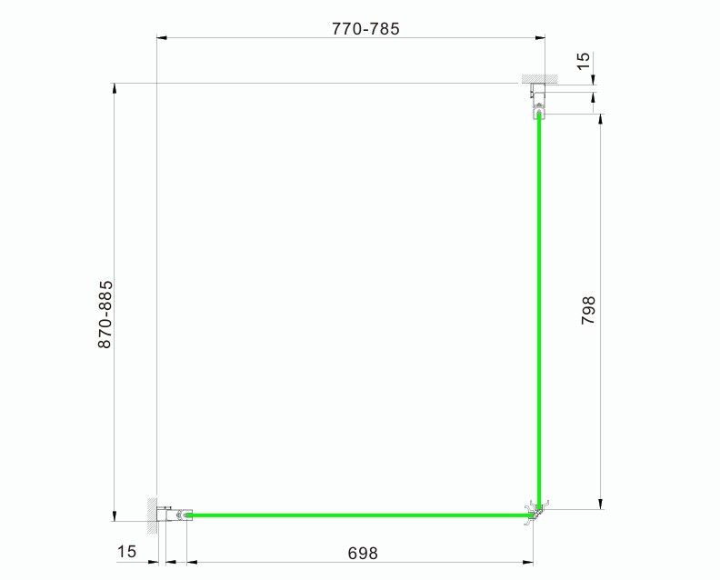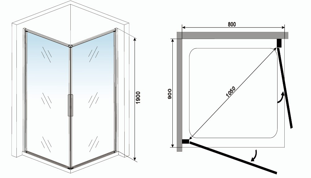 Zuhanykabin kifelé-befelé nyíló ajtóval