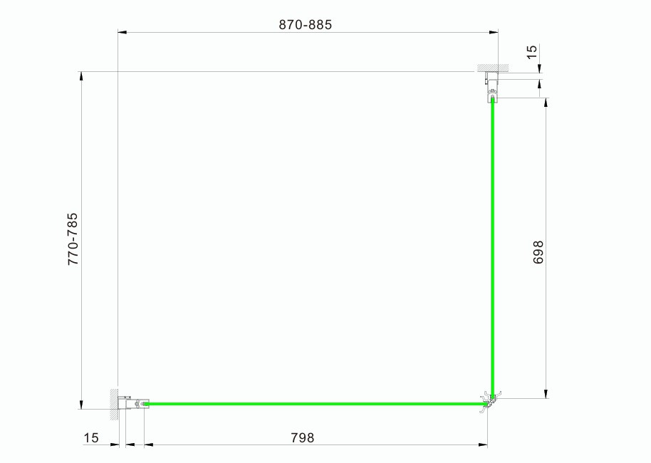 Zuhanykabin kifelé-befelé nyíló ajtóval