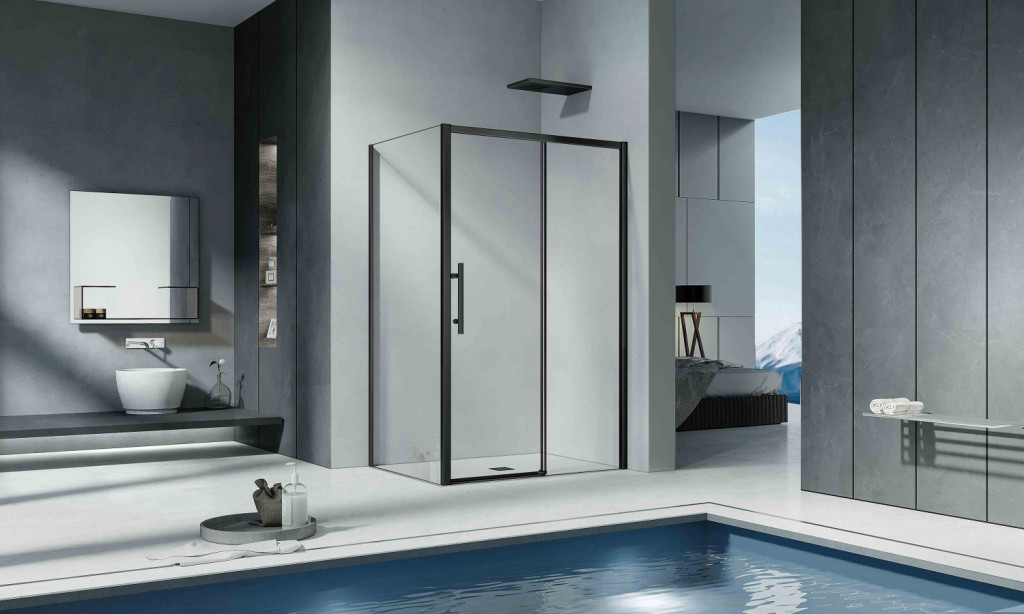 extra gyors telepítésű, csavarmantes keret technológiával ellátott, innovatív kategóriájú, szögletes, rollers zuhanykabin