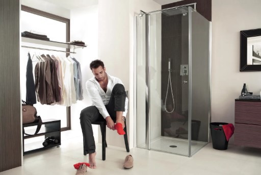 A szerkezet merevségét a sínek biztosítják.Lehetőség a kabin zuhanytálca nélküli felszerelésére, közvetlenül a csempére