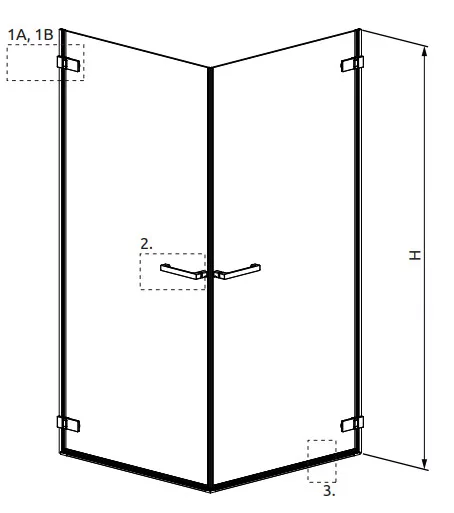 Kifelé-befelé nyíló szögletes zuhanykabin két nyílóajtóval.
