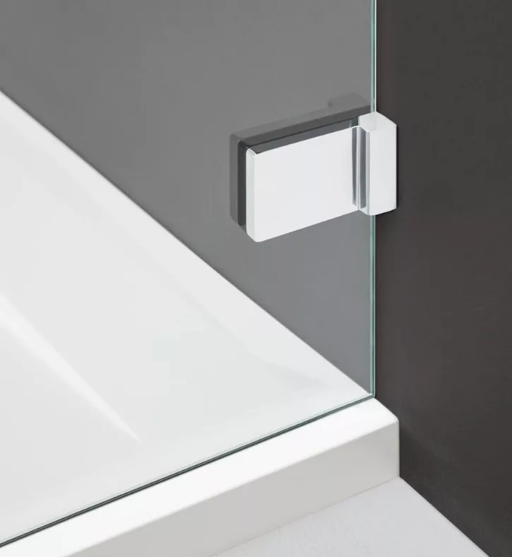 A kabin belső üvegfelületével teljesen sík króm zsanérok a könnyű takaríthatóság érdekében. 8 mm vastag, Easy Clean vízlepergető bevonattal ellátott edzett üveggel gyártjuk, mely elsőrendű megoldás a vízkőfoltok ellen, valamint a lerakódások megakadályozására.