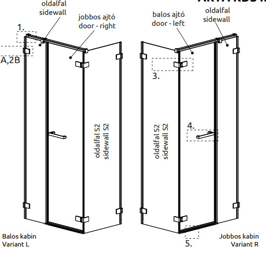Kifelé-befelé nyíló szögletes zuhanykabin egy fix és egy nyíló oldallal.