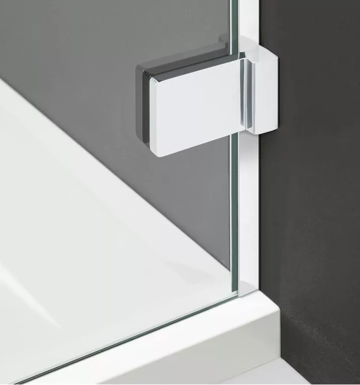 Kifelé-befelé nyíló szögletes zuhanykabin egy fix és egy nyíló oldallal.