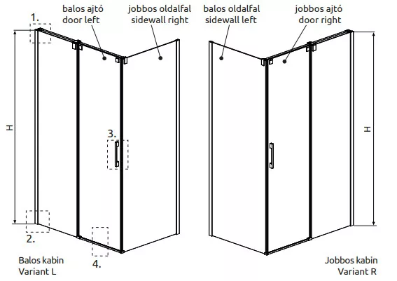Szögletes, felsőgörgős zuhanykabin tolóajtóval, oldalt fix résszel.
