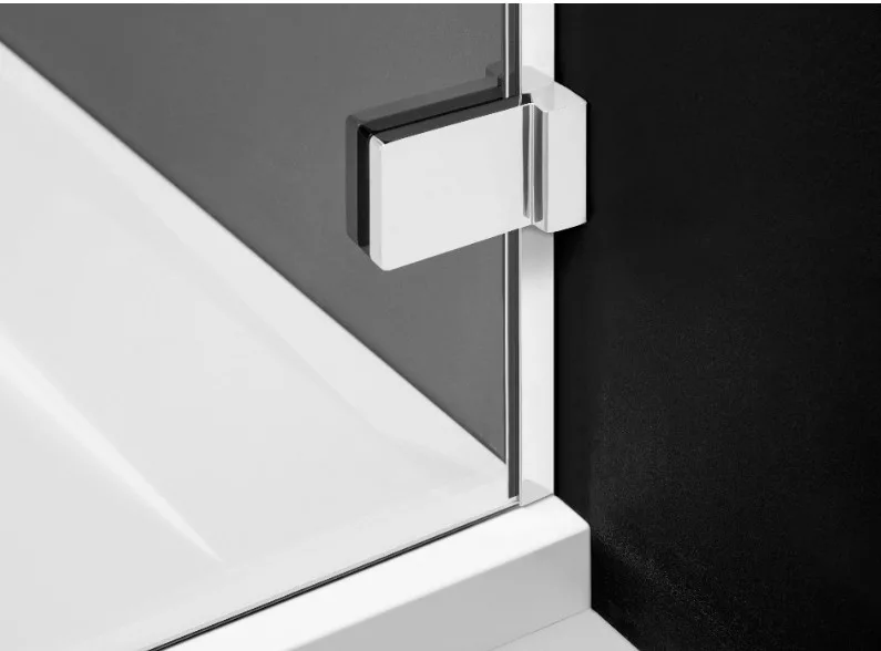 Egyenes falra építhető, háromoldalú kifelé nyíló szögletes zuhanykabin két fix és egy nyíló oldallal.