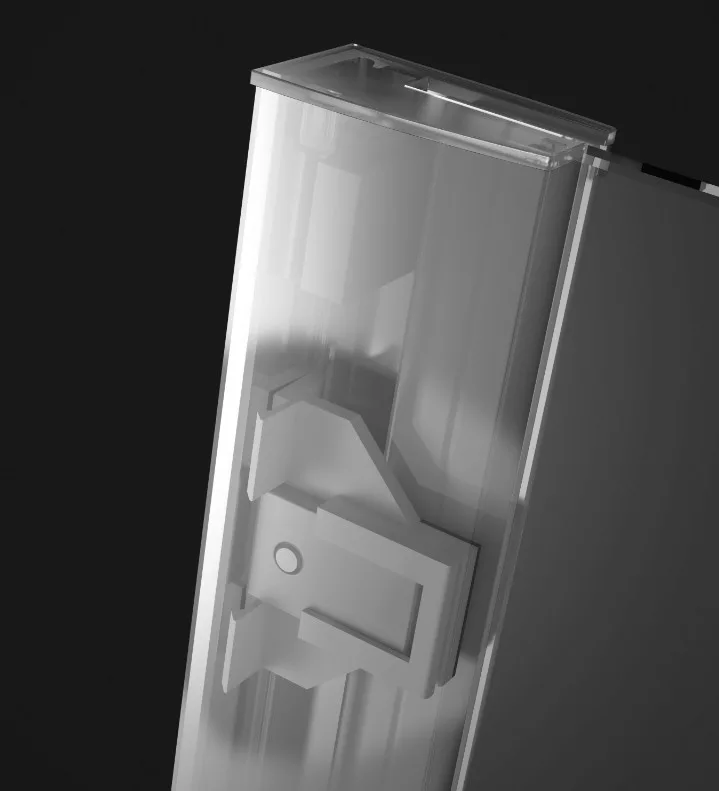 Állítható króm takaróprofil, mely lehetővé teszi a függőleges eltérések kiigazítását.