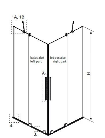 Szögletes zuhanykabin dupla, alsógörgős ajtókkal, szálcsiszolt fegyvermetál változat.