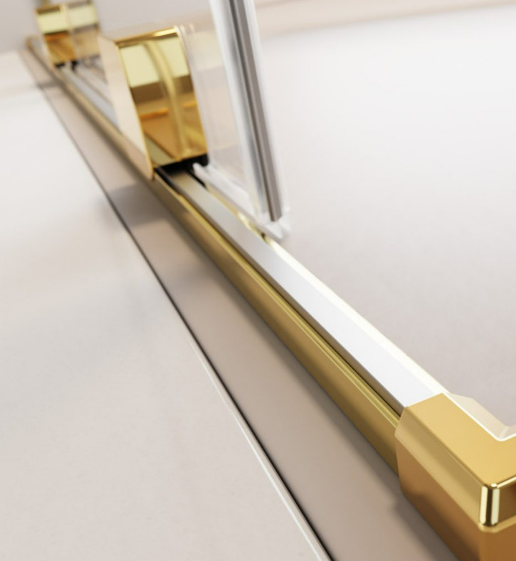 Szögletes arany zuhanykabin dupla, alsógörgős ajtókkal.