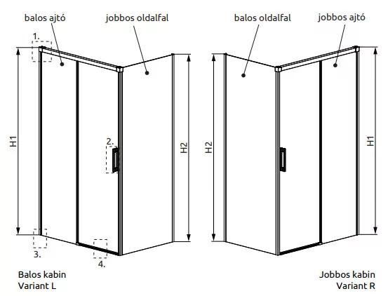 Szögletes fehér zuhanykabin egy görgős ajtóval és egy fix oldalfallal.
