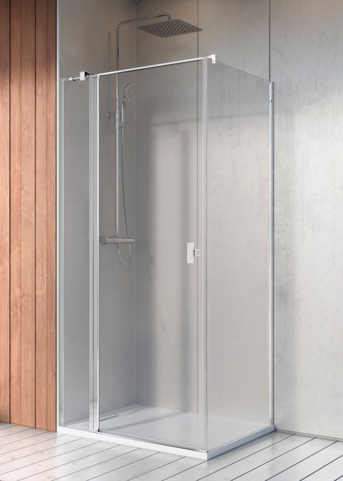 Kifelé-befelé nyíló szögletes zuhanykabin egy fix és egy nyíló oldallal
