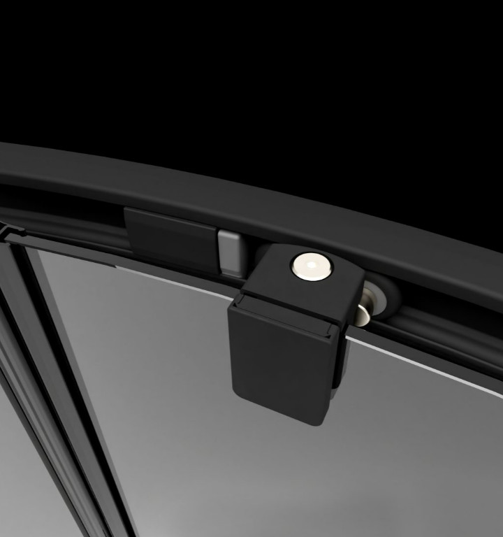 A síkrögzítésű görgőmechanika biztosítja az ajtók hangtalan és precíz mozgását.