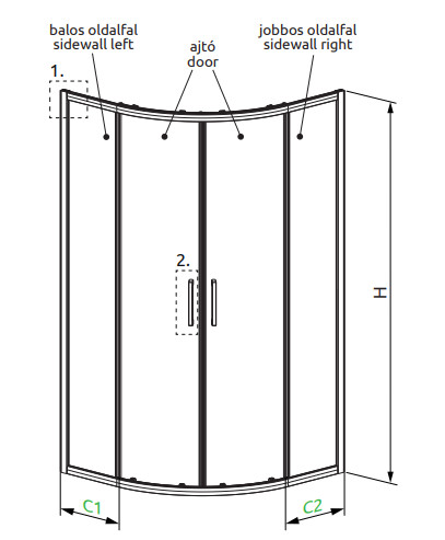Íves zuhanykabin két fix résszel és dupla tolóajtóval.