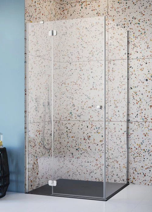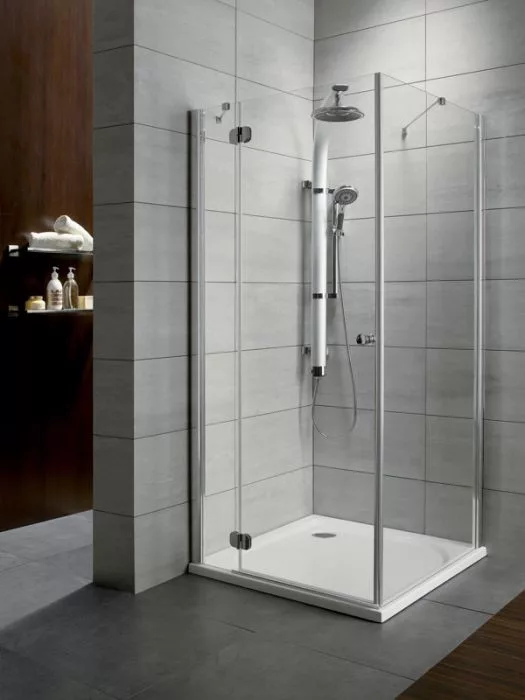 Kifelé nyíló szögletes zuhanykabin egy ajtóval és egy fix oldalfallal