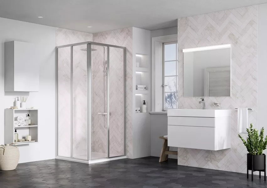Egy teljes zuhanykabin kialakításához 2 db SRV2-S zuhanyfal szükséges