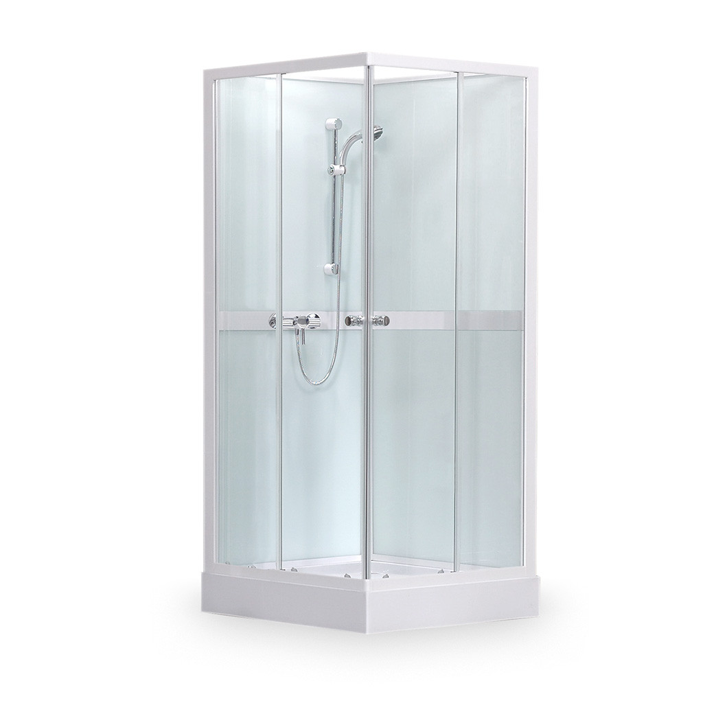 Komplett, szögletes zuhanykabin, hátfallal és zuhanytálcával