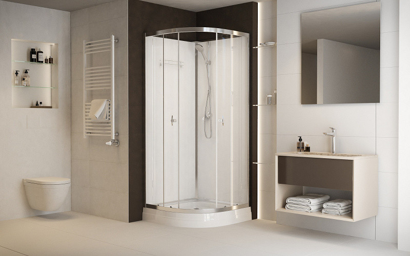 Üvegszál erősítéses, acél merevítésű, fehér színű, alacsony, akril zuhanytálca, állítható fém lábakkal