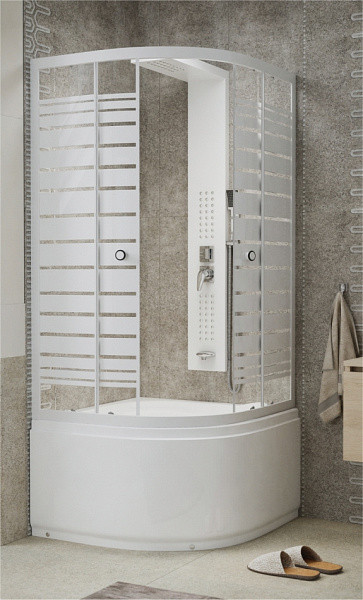 Üvegszál erősítéses, acél merevítésű mély akril zuhanytálca állítható fém lábakkal, beépített ülőkével