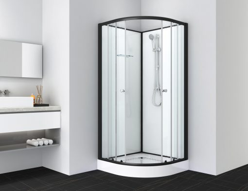 Komplett zuhanykabin Sanotechnik Bela 1Méretek: 80x80x203cmfekete színű alumínium keretfrontüvegek: 4 mm-es biztonsági üveghátfalak: 4 mm-es fehér biztonsági üvegkeverő csapteleptöbbfunkciós, sínes kézi zuhanypiperepolczuhanytálca fix előlappal, lábbal, szifonnal (magassága: 15 cm)tető nélkülfekete ABS fogantyúszürke ABS görgők
