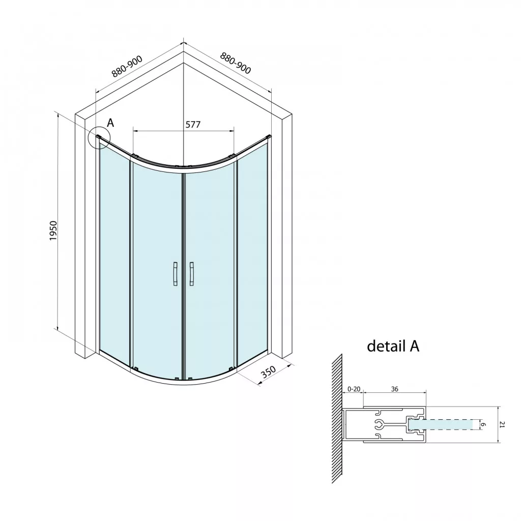 Zuhanykabin, Sapho BRUCKNER BORG 751.090.1 íves zuhanykabin, 900x900x1950mm
