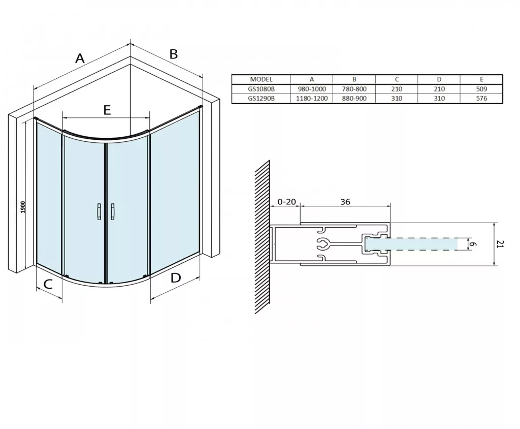 Zuhanykabin, Sapho Gelco SIGMA SIMPLY íves zuhanykabin, 100x80 cm matt fekete GS1080B
