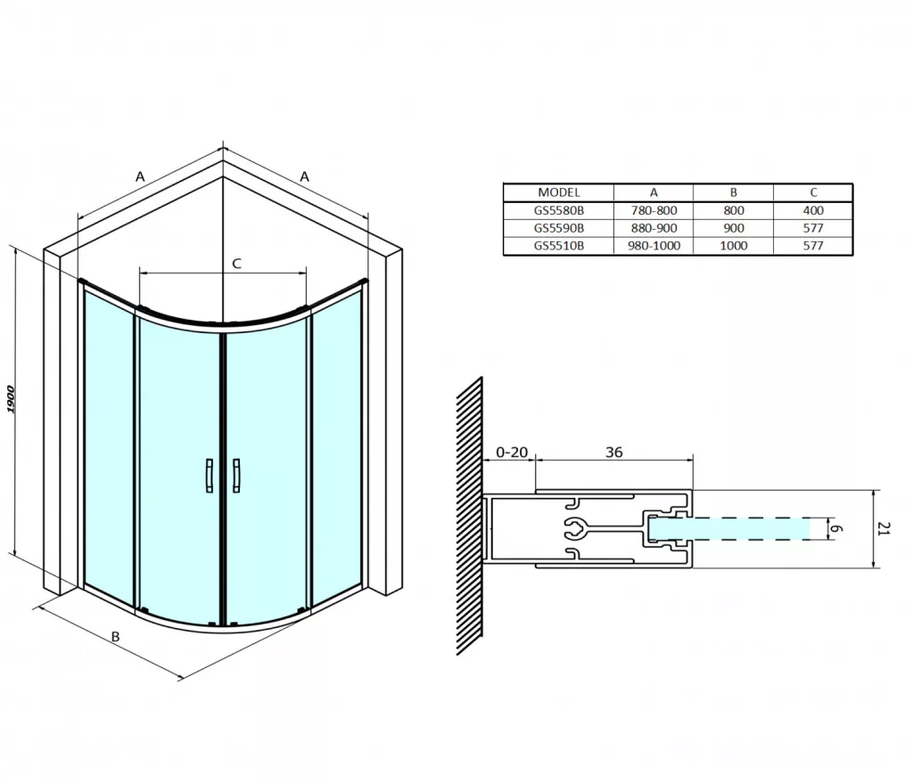 Zuhanykabin mérete: