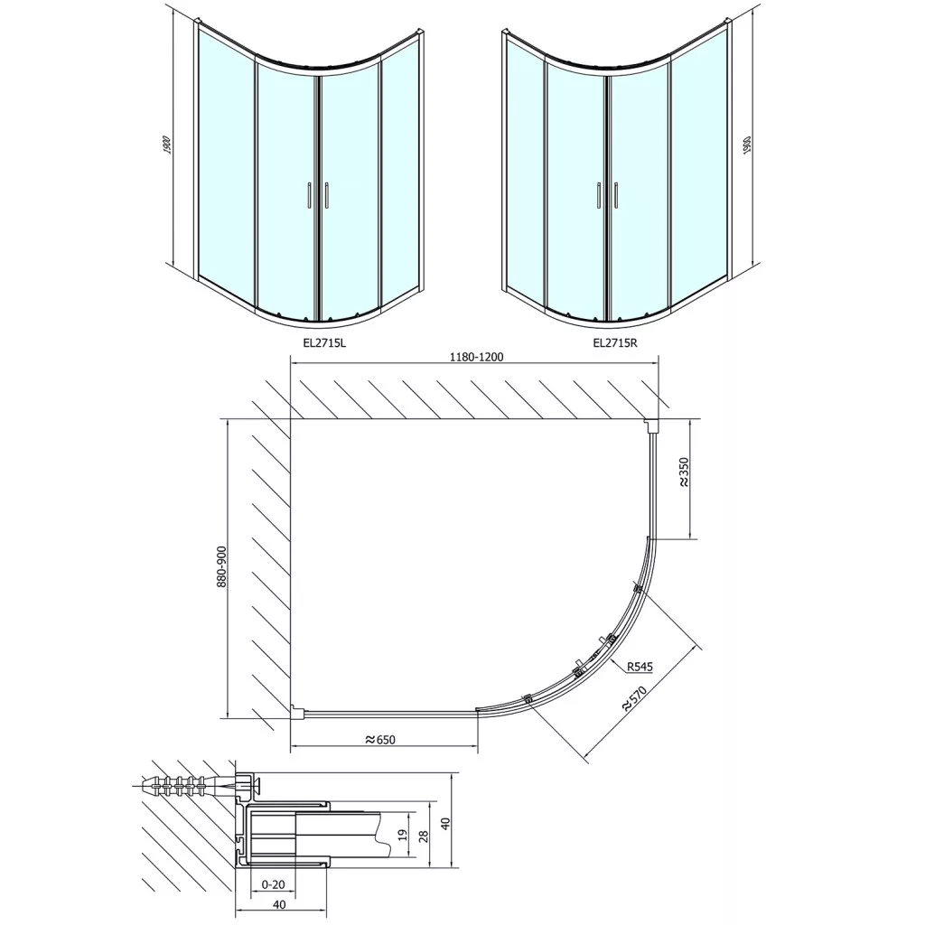 Íves zuhanykabin zuhanytálca nélkül. 120x90cm.