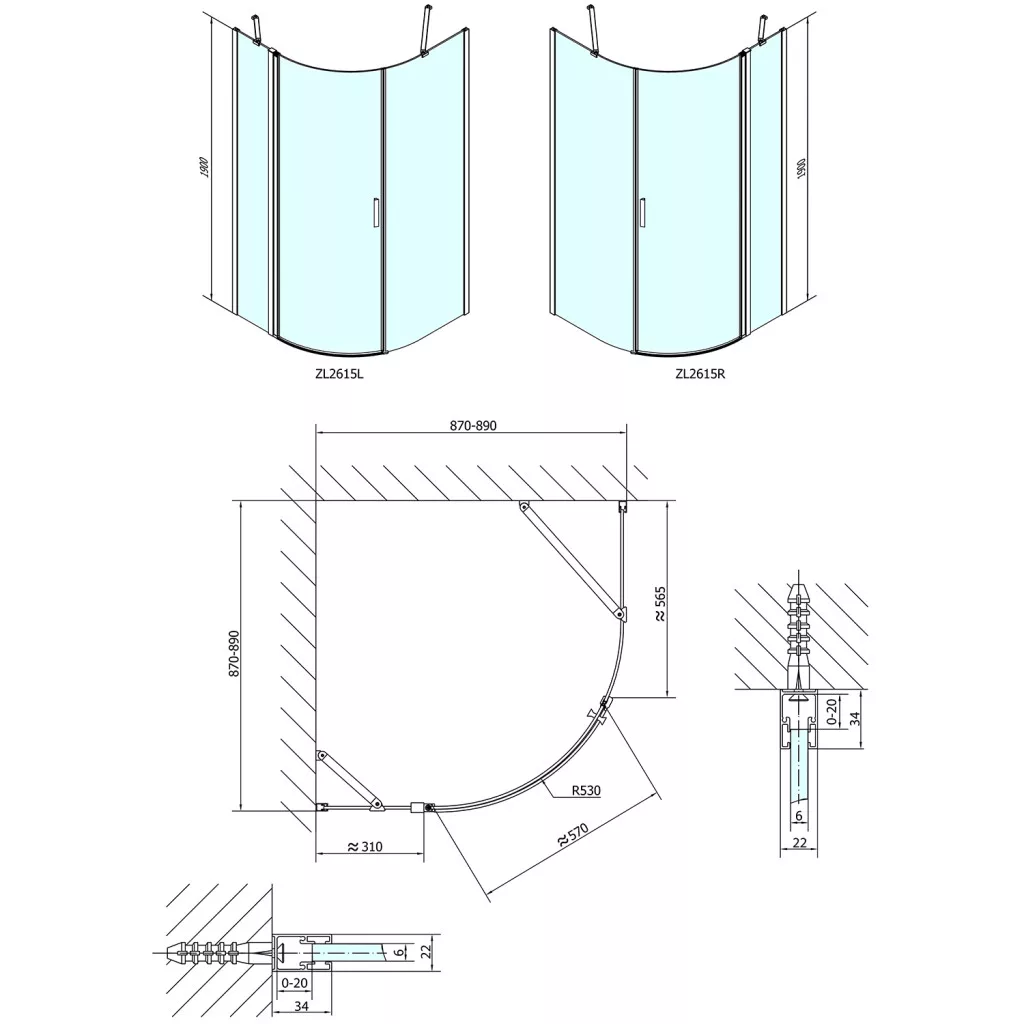 Zuhanykabin tulajdonság: Falsíkra szerelhető