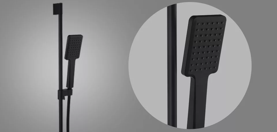 Tömör, robusztus megjelenés, szemet gyönyörködtető vonalvezetés. Mamba kollekciónk mattfekete kivitelben egészen lenyűgöző látványt nyújt minden fürdőszobában!Mattfekete felületű zuhanyrúdZuhanyfejjel és flexibilis zuhanycsővel ellátvaMéret: 98x54x700 mm