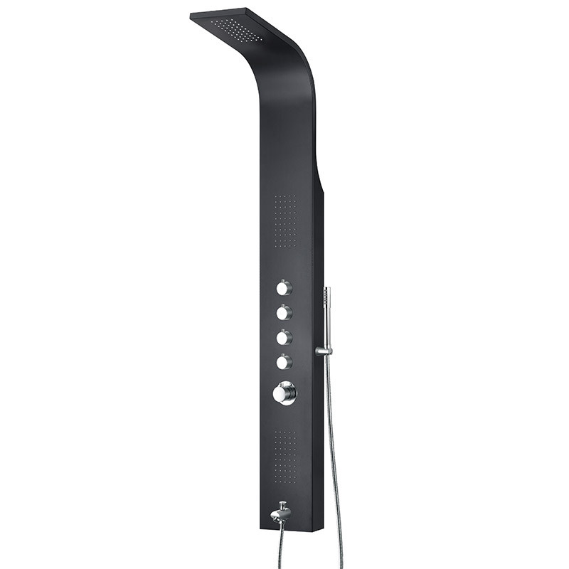 Termosztátos megoldása mellett robosztus, modern megjelenése emeli ki a Marinert a zuhanypanelek sorából. A megszokott, ugyanakkor egyedi kényelmi megoldások mellett 4 különálló zuhany csapteleppel és az alsó részen kialakított kádtöltő csapteleppel kínáljuk vevőinknek. Elérhető ezüst színű portszórt, illetve matt fekete acél paneltesttel!matt fekete paneltest2 × 50 db tűfúvókás élményzuhanytrópusi esőztető fejzuhany 50 fúvókávalkerámiabetétes keverőszelepkézitustermosztátos csaptelep 4 különálló zuhany csapteleppelkádbeömlő