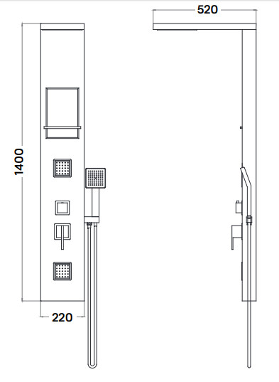 Modica zuhanypanelünk számos extra funkcióval lett ellátva a hagyományos modellekkel szemben. A 2×25 tűfúvókás hidromasszázs rendszer mellett kézitus és trópusi esőztető is gondoskodik a relaxációt nyújtó percekről. Fehér színű alumínium profiljával pedig megjelenésében is a luxus jegyeit őrzi.egykaros csaptelepfehér szinű alumínium paneltest2 x 25 tűfúvókás hidromasszázskézitustrópusi esőztetőtusfürdő tartó polc