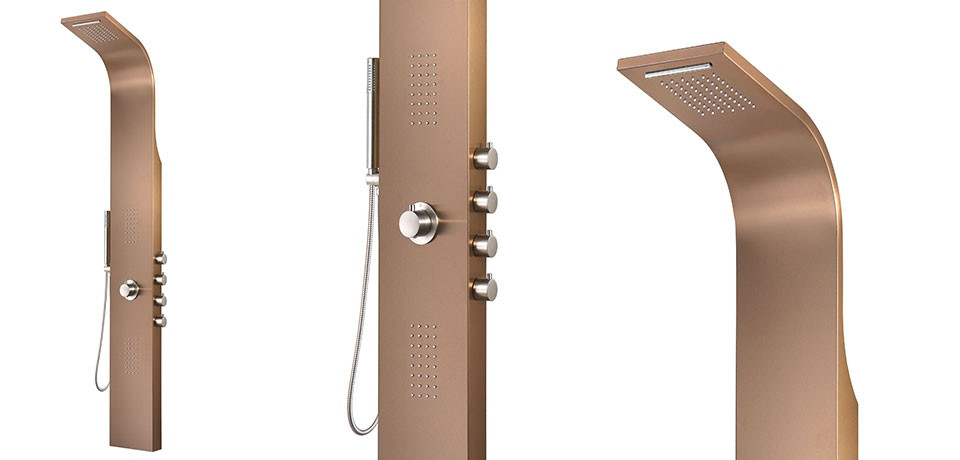 Bronz színű, rozsdamentes acél zuhanypanel-test