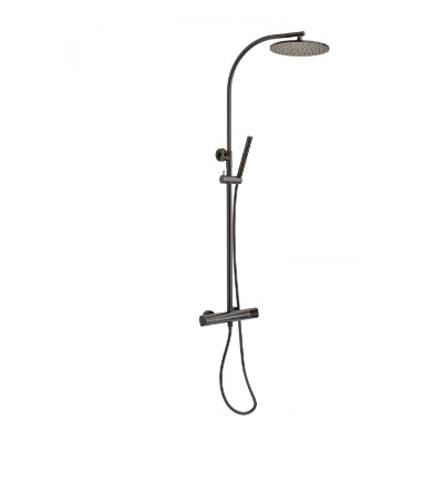PVD bevonatú merész fekete termosztátos zuhanyoszlop, minimalista kialakítással.