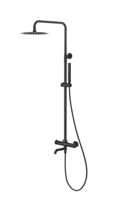 Zuhanyszett, Tboss Fly termosztátos zuhanyoszlop, 3 funkciós, kádtöltő csaptelep, matt fekete