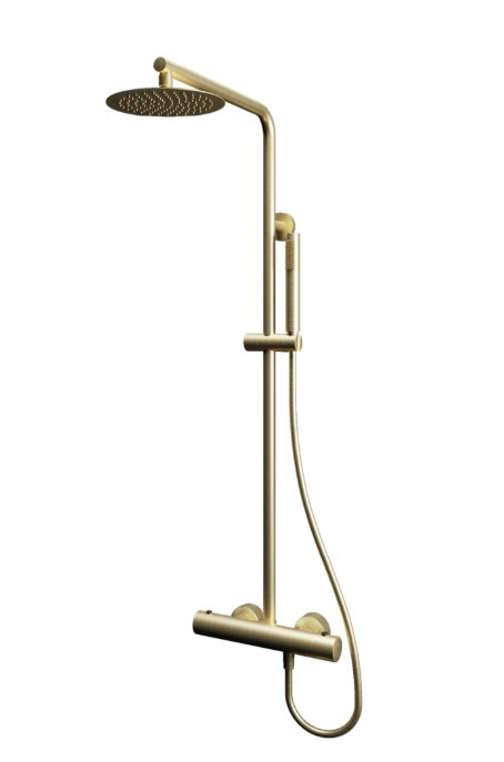 Zuhanyszett, Tboss Rio termosztátos zuhanyoszlop kézi zuhannyal,esőztetővel szálcsiszolt arany