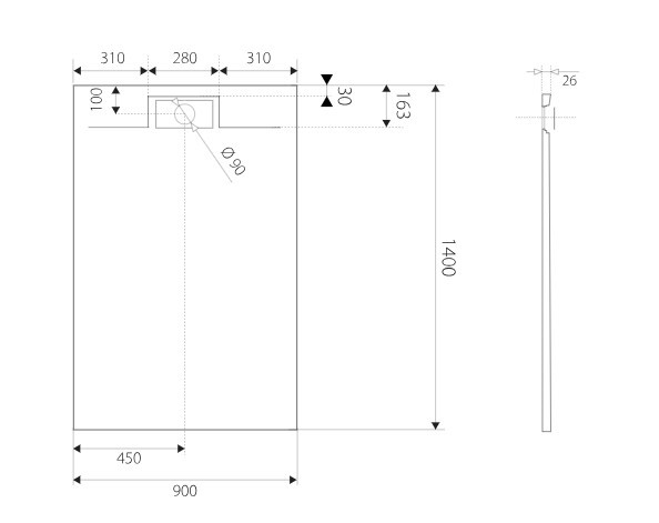 Zuhanytálca, Aquatek Eros SMC zuhanytálca 140x90