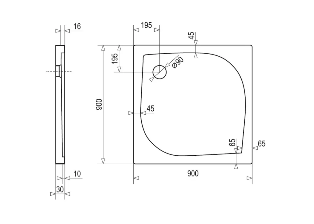 Zuhanytálca, Aquatek Hard szögletes zuhanytálca 90x90