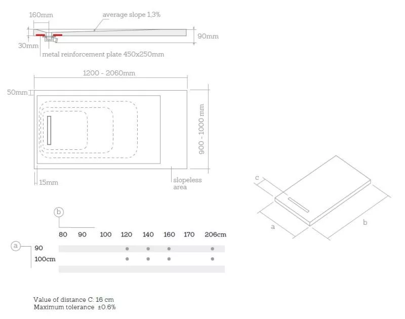 Zuhanytálca, AREZZO design SOLIDSoft zuhanytálca 206x90 cm, FEHÉR, egyenes lefolyóval (2 doboz)