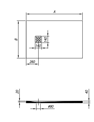 Szögletes öntött műmárvány zuhanytálca