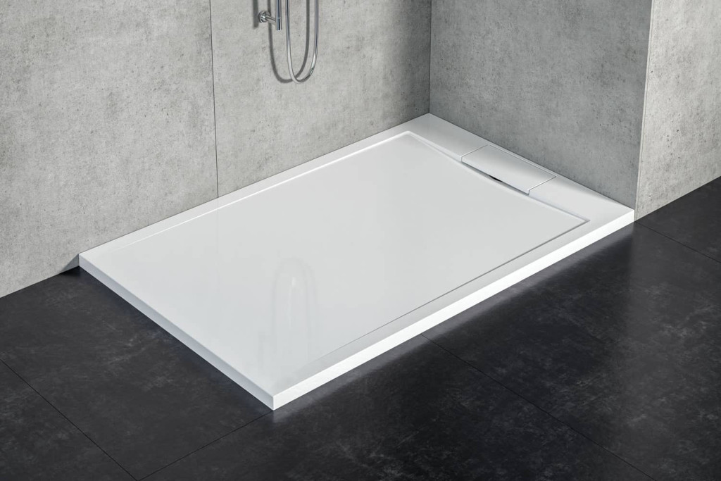 Szögletes öntött műmárvány zuhanytálca rejtett lefolyóval