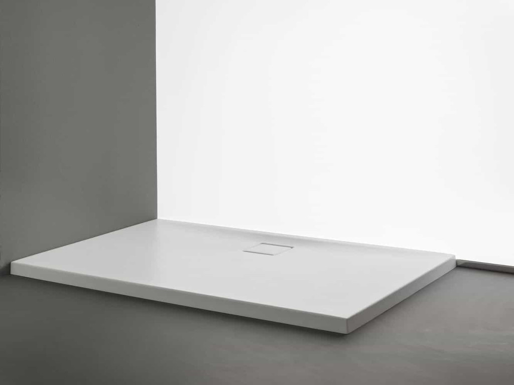 Modifikált akrilból készült szögletes zuhanytálca, relief felülettel, színazonos lefolyófedéllel.
