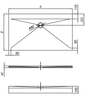 Szögletes öntött műmárvány zuhanytálca