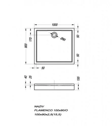 Zuhanytálca, Kolpa San Flamenco 100x90 előlap nélkül