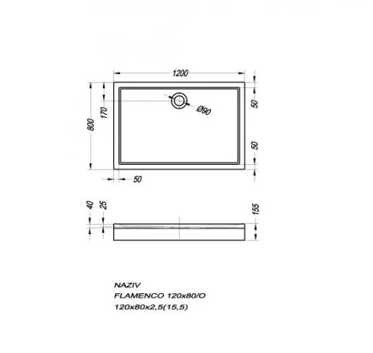 Zuhanytálca, Kolpa San Flamenco 120x80 előlap nélkül