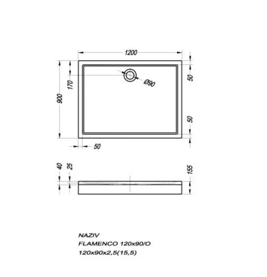 Zuhanytálca, Kolpa San Flamenco 120x90 előlap nélkül