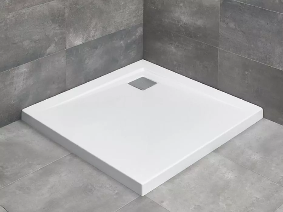 Közvetlenül a padlósíkra építhető, szögletes akril zuhanytálca, R 399-es szifonnal