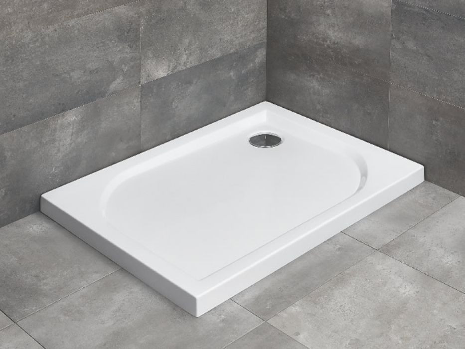 Közvetlenül a padlósíkra építhető, szögletes, aszimmetrikus akril zuhanytálca, ST 90-es szifonnal