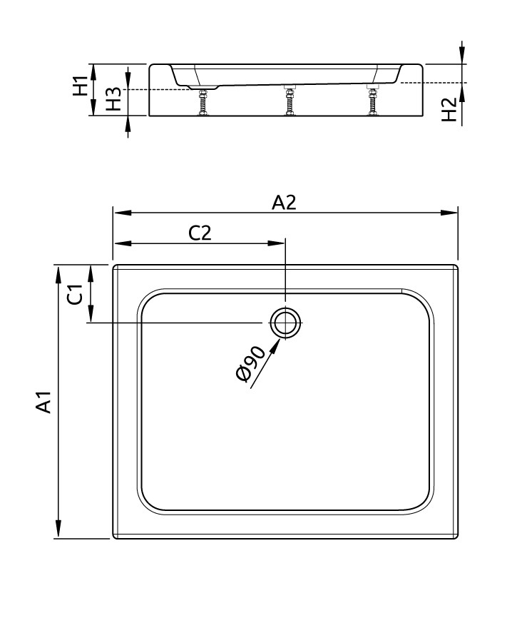 Zuhanytálca mérete: 100x90
