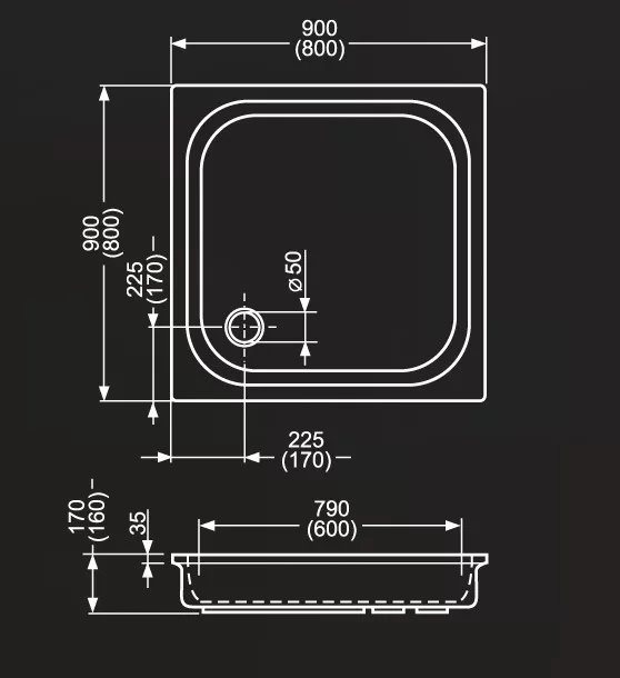 Zuhanytálca, Roltechnik Cola 900x900 szögletes