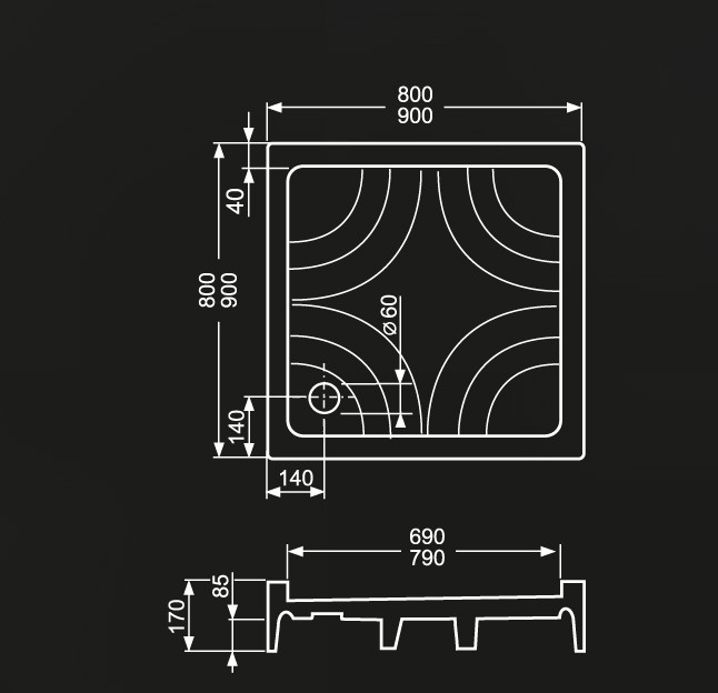 Zuhanytálca, Roltechnik Cola-P 800x800 önhordó szögletes
